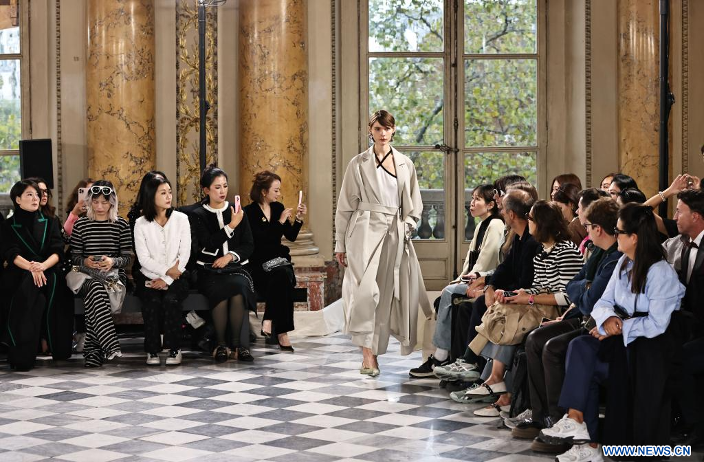 PARIS, 30 septembre (Xinhua) -- Une mannequin présente une création issue des collections printemps/été 2026 d'YINER lors de l'événement Shenzhen Futian Fashion Day Paris organisé pendant la Fashion Week de Paris, en France, le 29 septembre 2025. (Xinhua/Gao Jing)