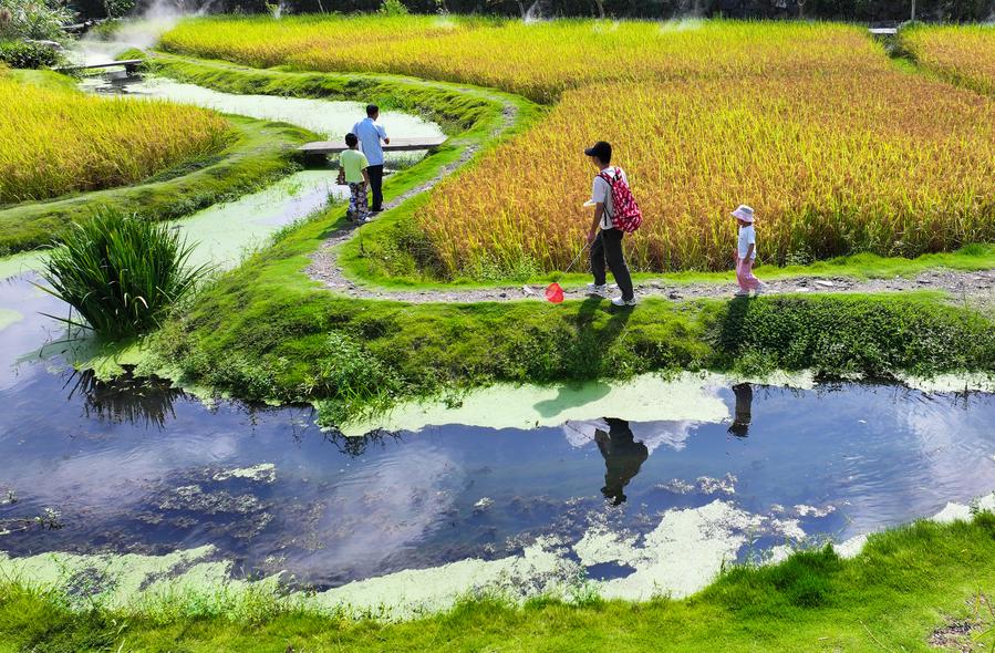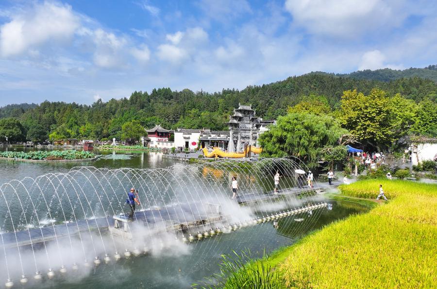 YIXIAN, 1er octobre (Xinhua) -- Les villages historiques de Xidi et Hongcun, tous deux classés au patrimoine mondial de l'UNESCO dans le district de Yixian, dans la province d'Anhui (est de la Chine), ont accueilli un grand nombre de touristes le premier jour des congés de la fête nationale grâce à leur architecture élégante et leurs paysages pittoresques.
