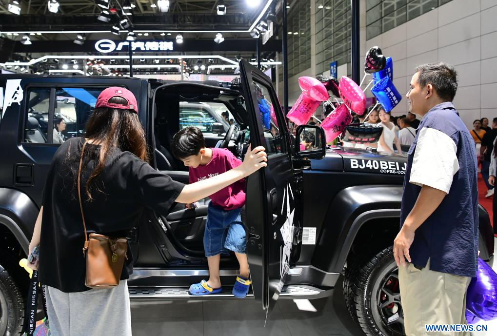 FUZHOU, 2 octobre (Xinhua) -- Des visiteurs découvrent un véhicule tout-terrain d'une marque chinoise lors du 46e Salon international de l'automobile de Chine (Fuzhou), dans la province du Fujian, dans l'est de la Chine, le 1er octobre 2025.