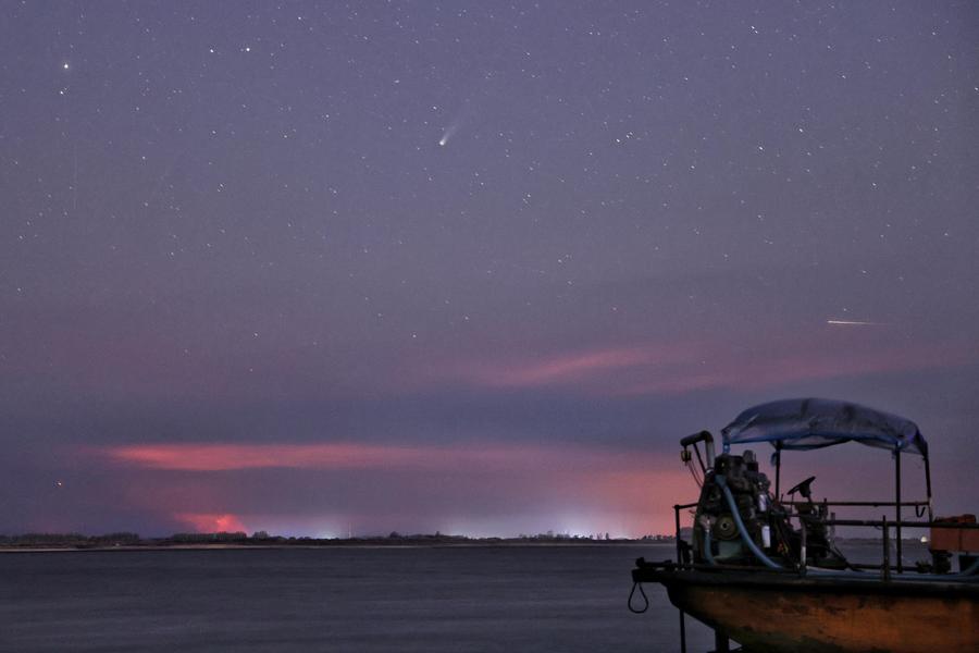 La comète C/2025 A6 (Lemmon) dans le ciel au-dessus de la ville de Heihe, dans la province chinoise du Heilongjiang (nord-est), le 20 octobre 2025. (Photo : Qian Boyu)