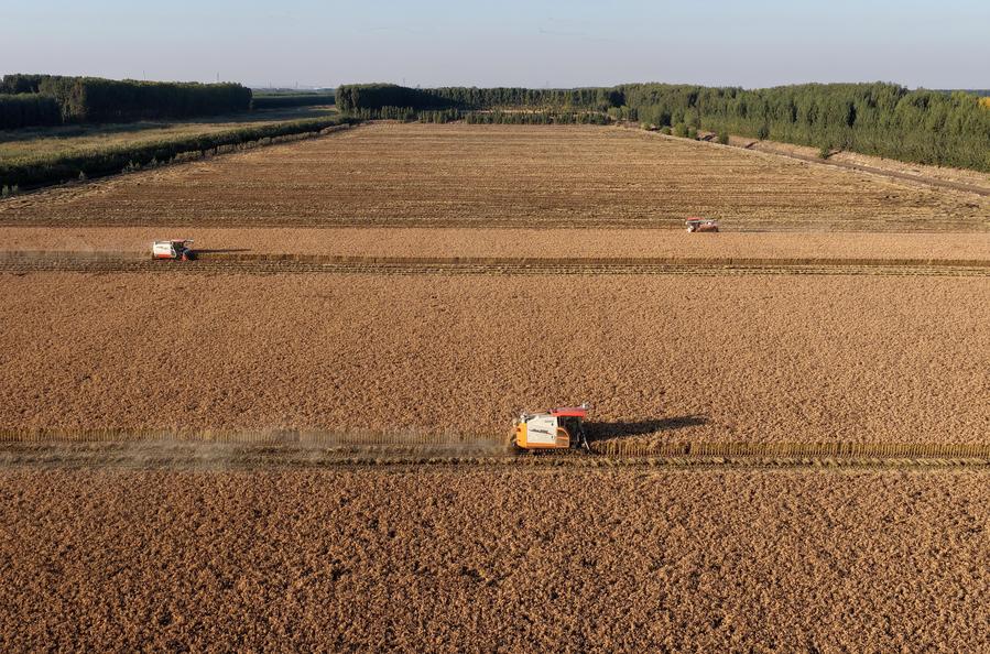 TANGSHAN, 28 octobre (Xinhua) -- La saison de la récolte du riz est arrivée à Tangshan, où les agriculteurs profitent du beau temps pour accélérer les récoltes.