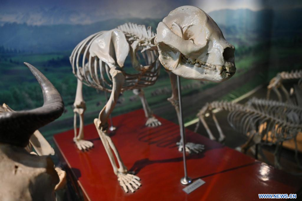 XI'AN, 29 octobre (Xinhua) -- Un squelette de panda géant exposé au musée des animaux situé dans le parc d'exposition de l'université Northwest A&F à Yangling, dans la province chinoise du Shaanxi (nord-ouest), le 26 octobre 2025. (Photo : Li Yibo)