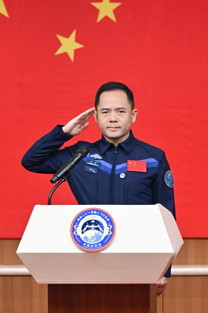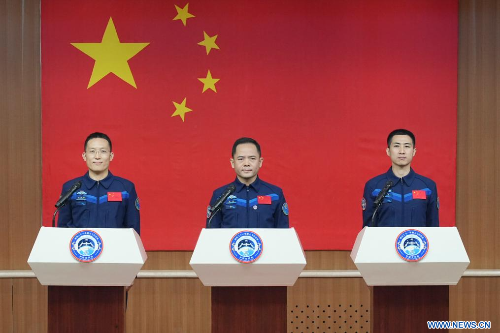 JIUQUAN, 30 octobre (Xinhua) -- Les astronautes chinois Zhang Lu, Wu Fei et Zhang Hongzhang, qui participeront à la mission spatiale prochaine Shenzhou-21, ont rencontré la presse jeudi.