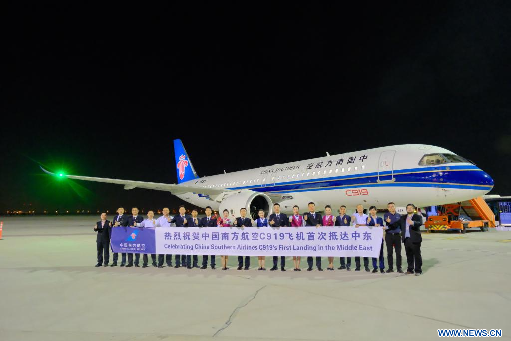 DUBAI, 14 novembre (Xinhua) -- Un C919 de la compagnie aérienne China Southern Airlines s'est posé vendredi matin sur l'aéroport international Al-Maktoum de Dubaï pour faire ses débuts au Salon aéronautique de Dubaï 2025, selon la compagnie.