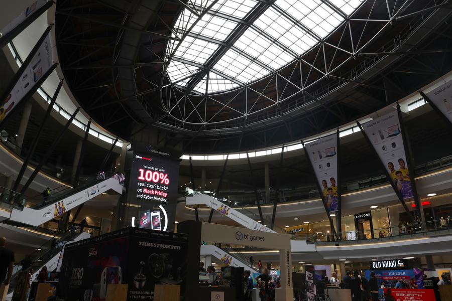 JOHANNESBURG, 29 novembre (Xinhua) -- Un centre commercial à Johannesburg, en Afrique du Sud, accueille des clients pendant les soldes du "Black Friday", le 28 novembre 2025. (Xinhua/Chen Wei)