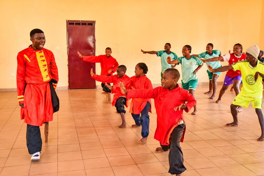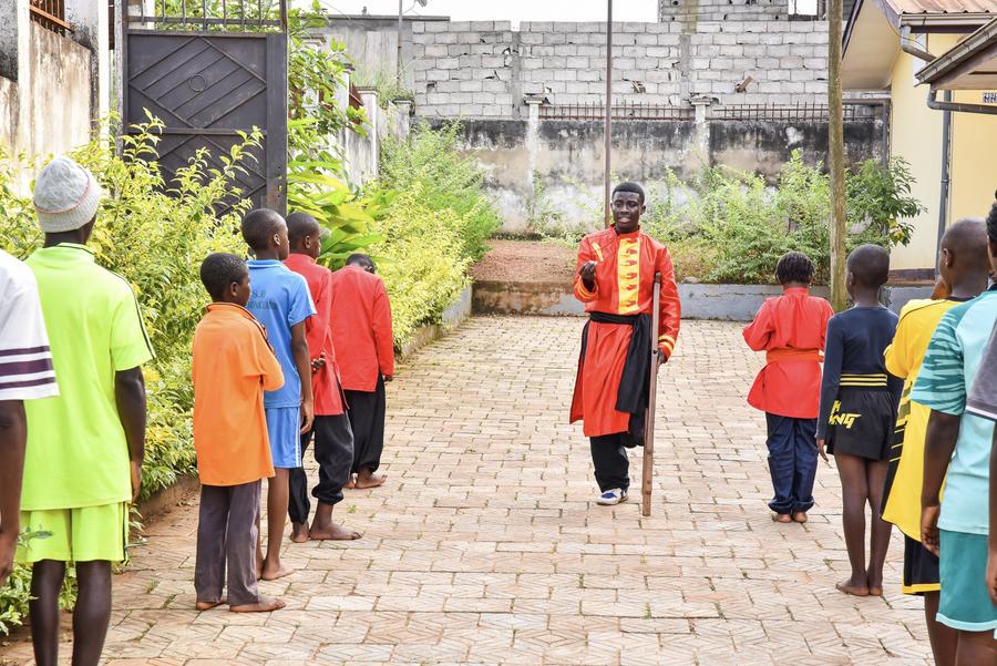 Martin Mangwandjo (au centre), un Camerounais en situation de handicap, guide des jeunes apprenants dans la pratique de mouvements d'arts martiaux chinois dans son centre d'entraînement à Yaoundé, la capitale du Cameroun, le 18 novembre 2025. (Xinhua/Kepseu)Martin Mangwandjo (1er à droite), un Camerounais en situation de handicap, guide des jeunes apprenants dans la pratique de mouvements d'arts martiaux chinois dans son centre d'entraînement à Yaoundé, la capitale du Cameroun, le 18 novembre 2025. (Xinhua/Kepseu)Martin Mangwandjo (1er à gauche), un Camerounais en situation de handicap, guide des jeunes apprenants dans la pratique de mouvements d'arts martiaux chinois dans son centre d'entraînement à Yaoundé, la capitale du Cameroun, le 18 novembre 2025. (Xinhua/Kepseu)Martin Mangwandjo (devant), un Camerounais en situation de handicap, guide des jeunes apprenants dans la pratique de mouvements d'arts martiaux chinois dans son centre d'entraînement à Yaoundé, la capitale du Cameroun, le 18 novembre 2025. (Xinhua/Kepseu)■