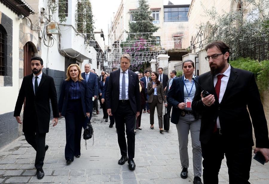 DAMAS, 4 décembre (Xinhua) -- Samuel Zbogar, représentant permanent de la Slovénie auprès des Nations Unies et président du Conseil de sécurité pour le mois de décembre, s'exprime lors d'une conférence de presse à Damas, en Syrie, le 4 décembre 2025. Une délégation du Conseil de sécurité des Nations Unies (CSNU) a effectué jeudi une visite rare en Syrie, marquant ainsi un engagement de haut niveau avec les autorités syriennes depuis leur prise de pouvoir suite au renversement de l'ancien président Bachar el-Assad en décembre 2024. (Xinhua/Ammar Safarjalani)DAMAS, 4 décembre (Xinhua) -- Les membres de la délégation du Conseil de sécurité des Nations Unies visitent la vieille ville de Damas, en Syrie, le 4 décembre 2025. (Xinhua/Ammar Safarjalani)DAMAS, 4 décembre (Xinhua) -- Photo sur laquelle on peut voir un convoi de la délégation du Conseil de sécurité des Nations Unies alors qu'il arrive à la périphérie de Damas après être entré en Syrie par la frontière libanaise le 4 décembre 2025. (Xinhua/Ammar Safarjalani)