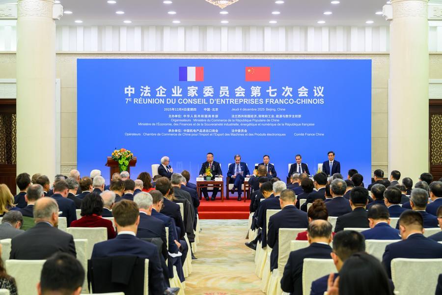 BEIJING, 5 décembre (Xinhua) -- La septième réunion du Conseil d'entreprises sino-français a été organisée jeudi matin à Beijing, réunissant plus de 150 représentants d'entreprises venus discuter du développement vert, de la transformation industrielle et des opportunités d'investissement transfrontalier.