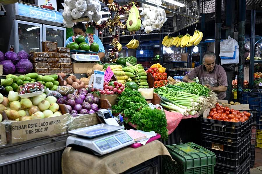 Photo prise le 5 décembre 2025 montrant une scène au marché de Quinta Crespo, l'un des marchés municipaux les plus célèbres et traditionnels de la ville de Caracas au Venezuela. (Xinhua/Li Muzi)■