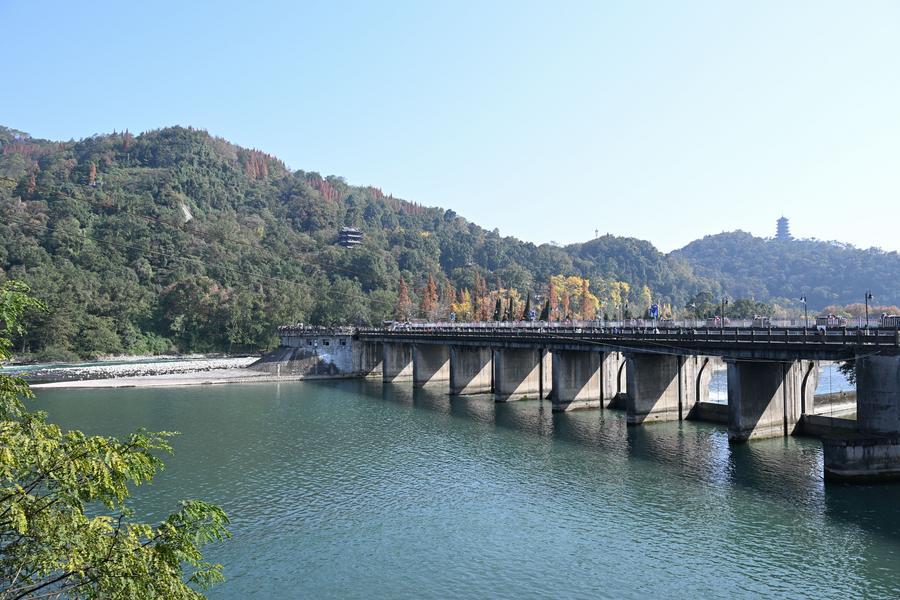 CHENGDU, 7 décembre (Xinhua) -- Le système d'irrigation de Dujiangyan, caractérisé par un détournement d'eau sans barrage, a été construit en 256 avant J.-C. Il s'agit du plus ancien et du seul grand projet de conservation de l'eau encore existant au monde, qui a résisté aux épreuves des catastrophes naturelles telles que les inondations et les tremblements de terre. Il est toujours utilisé aujourd'hui. Un barrage en forme de "bouche de poisson" sépare la rivière Minjiang en un canal intérieur destiné à l'irrigation et un canal extérieur destiné à l'évacuation des eaux de crue. Il a été inscrit au patrimoine culturel mondial de l'UNESCO en novembre 2000, puis ajouté à la liste des structures d'irrigation du patrimoine mondial en août 2018.