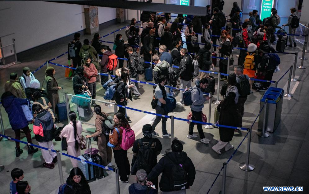 RICHMOND, 19 décembre (Xinhua) -- Des passagers font la queue pour s'enregistrer à l'aéroport international de Vancouver à Richmond, en Colombie-Britannique, au Canada, le 18 décembre 2025. La saison des voyages pour les vacances d'hiver étant arrivée, l'aéroport international de Vancouver a traité plus de 76.800 voyages de passagers jeudi. (Xinhua/Liang Sen)