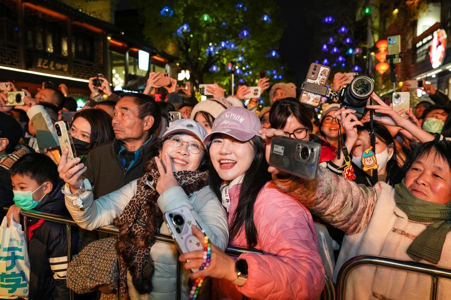 Des gens participent à un défilé du Nouvel An dans le quartier culturel et historique de Mendong à Nanjing, dans la province chinoise du Jiangsu (est), le 31 décembre 2025. (Photo : Li Bo)