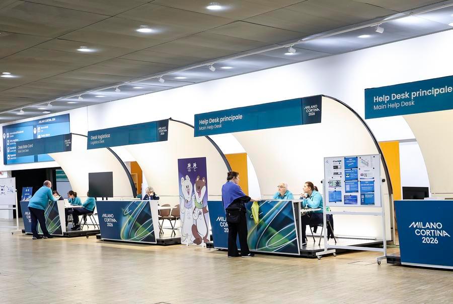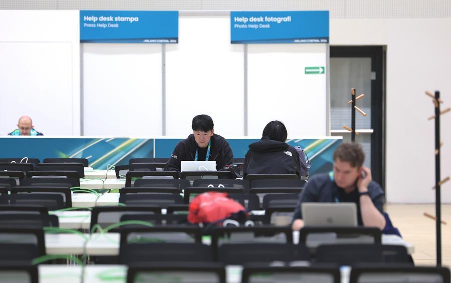 Des membres du personnel travaillent au Centre principal des médias pour les Jeux olympiques d'hiver 2026 de Milan Cortina à Milan, en Italie, le 28 janvier 2026. (Xinhua/Hu Xingyu)
