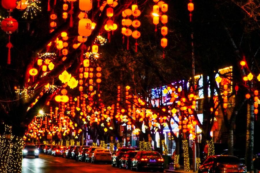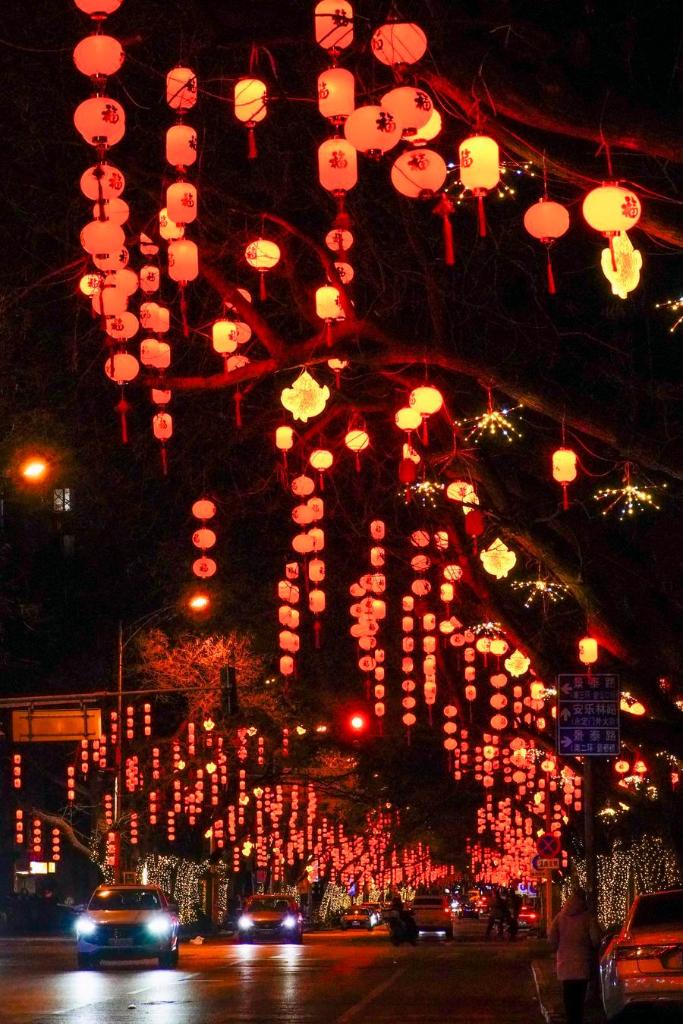 Des lanternes suspendues pour célébrer la fête du Printemps à Beijing, capitale chinoise, le 7 février 2026. (Photo : Liu Mancang)