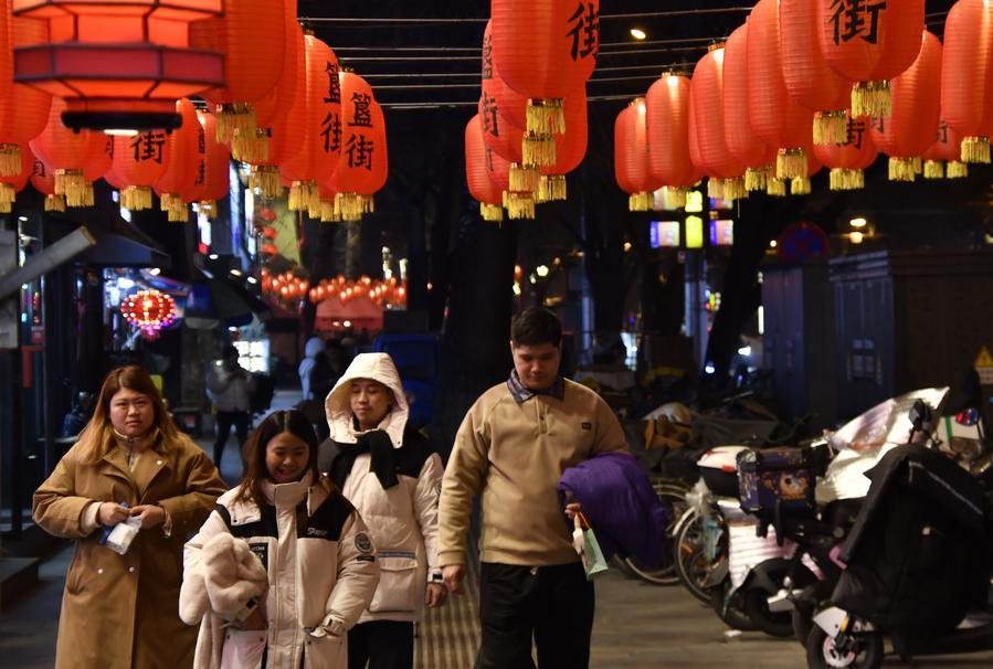 BEIJING, 8 février (Xinhua) -- Des lanternes suspendues pour célébrer la fête du Printemps à Beijing, capitale chinoise, le 7 février 2026.
