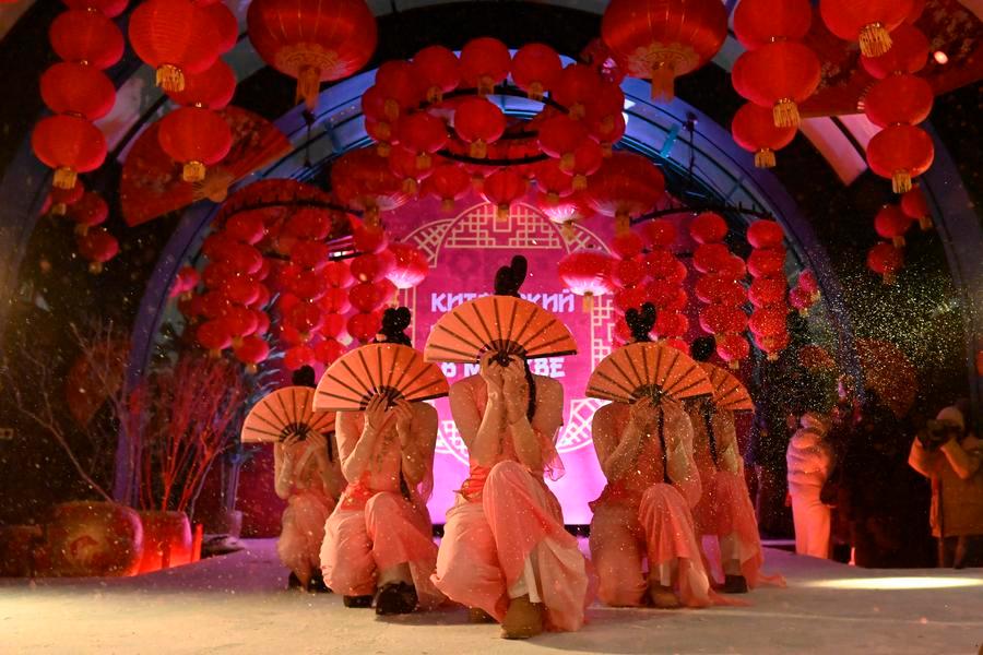 MOSCOU, 17 février (Xinhua) -- Des actrices se produisent lors d'une cérémonie d'ouverture des célébrations du Nouvel An chinois à Moscou, en Russie, le 16 février 2026. (Xinhua/Alexander Zemlianichenko Jr)