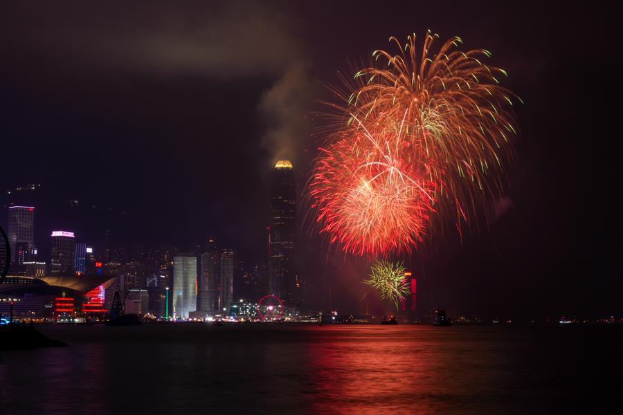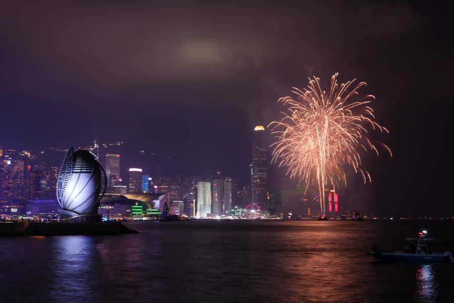 Feux d'artifice célébrant le Nouvel An chinois au-dessus du port Victoria à Hong Kong, dans le sud de la Chine, le 18 février 2026. (Photo : Zhu Wei)