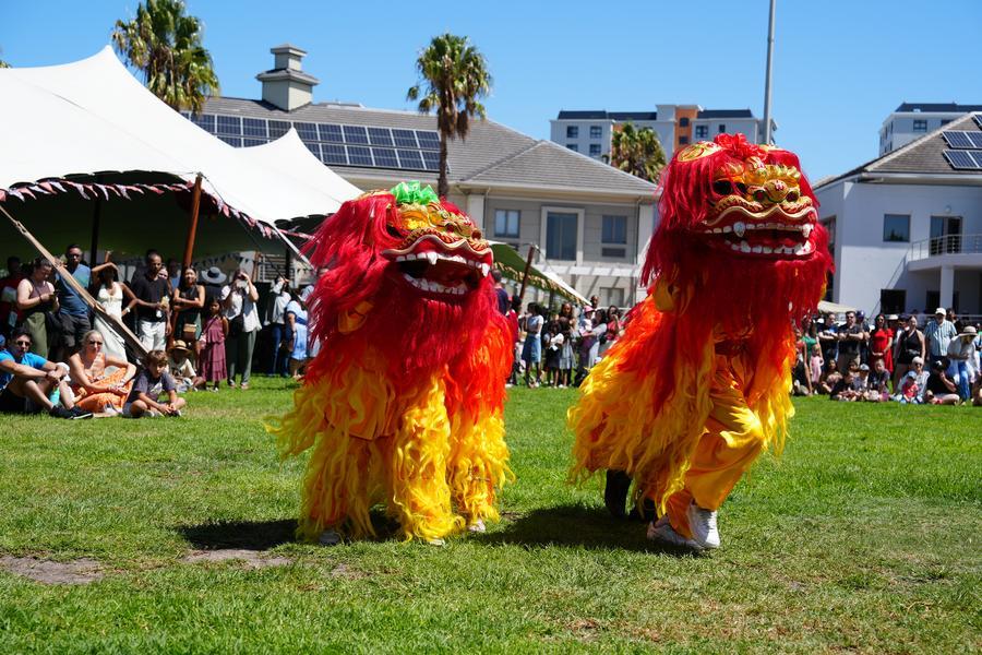 LE CAP, 22 février (Xinhua) -- Un habitant de la région se rend à un stand pour découvrir des objets chinois artisanaux lors de la foire du Nouvel An chinois au Cap, en Afrique du Sud, le 21 février 2026. (Xinhua/Wang Lei)Des artistes locaux exécutent une danse du lion lors de la foire du Nouvel An chinois au Cap, en Afrique du Sud, le 21 février 2026. (Xinhua/Wang Lei)■