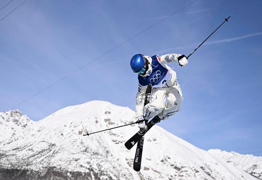 LIVIGNO, 22 février (Xinhua) -- La Chinoise Gu Ailing participe à la troisième manche de la finale de halfpipe en ski freestyle (femmes) aux Jeux olympiques d'hiver de Milan-Cortina 2026, à Livigno, en Italie, le 22 février 2026. (Xinhua/Wu Huiwo)