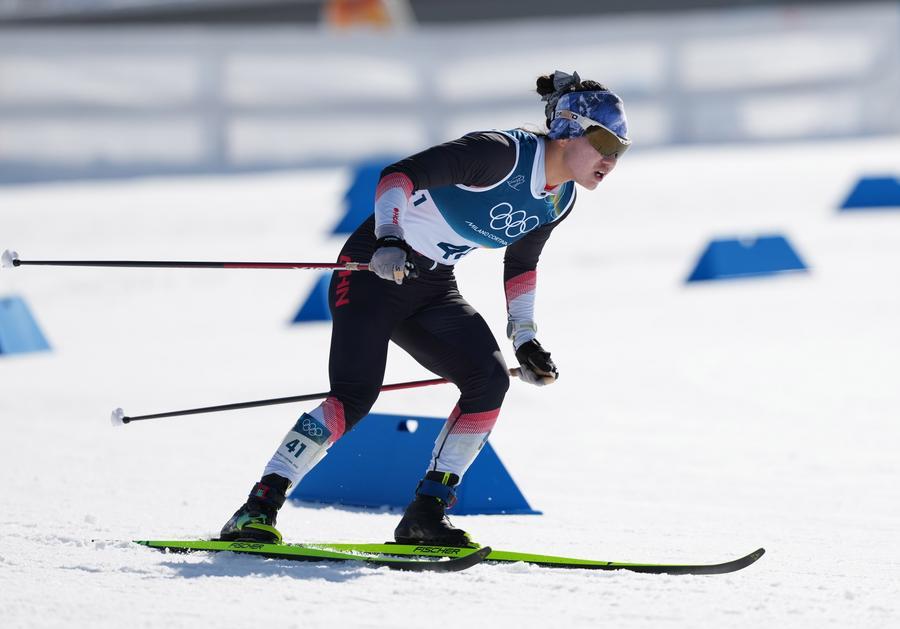 TESERO, 22 février (Xinhua) -- La chinoise Chi Chunxue participe à l'épreuve de ski de fond 50 km classique départ en ligne femmes aux Jeux olympiques d'hiver de Milan-Cortina 2026, à Tesero, en Italie, le 22 février 2026. (Xinhua/Meng Yongmin)