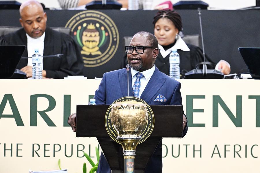 LE CAP, 26 février (Xinhua) -- Le ministre sud-africain des Finances, Enoch Godongwana, prononce un discours sur le budget 2026 au Parlement, au Cap en Afrique du Sud, le 25 février 2026. L'économie sud-africaine devrait connaître une croissance de 1,6% en 2026, avec des perspectives en constante amélioration, a déclaré mercredi le ministre. (Xinhua/Xabiso Mkhabela)Le ministre sud-africain des Finances, Enoch Godongwana, prononce un discours sur le budget 2026 au Parlement, au Cap, en Afrique du Sud, le 25 février 2026. L'économie sud-africaine devrait connaître une croissance de 1,6% en 2026, avec des perspectives en constante amélioration, a déclaré mercredi le ministre. (Xinhua/Xabiso Mkhabela)Le ministre sud-africain des Finances, Enoch Godongwana, prononce un discours sur le budget 2026 au Parlement, au Cap, en Afrique du Sud, le 25 février 2026. L'économie sud-africaine devrait connaître une croissance de 1,6% en 2026, avec des perspectives en constante amélioration, a déclaré mercredi le ministre. (Xinhua/Xabiso Mkhabela)■