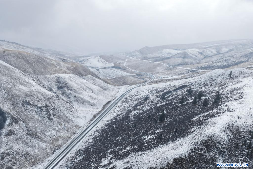 QILIAN, 9 mars (Xinhua) -- Paysage enneigé du district de Qilian, dans la préfecture autonome tibétaine de Haibei, dans la province chinoise du Qinghai (nord-ouest), le 8 mars 2026. (Photo : Zhang Long)