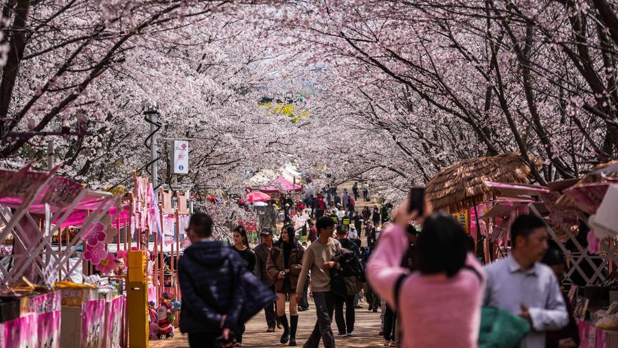 GUIYANG, 12 mars (Xinhua) -- Des cerisiers en fleurs dans la nouvelle zone de Gui'an, dans la province chinoise du Guizhou (sud-ouest), le 11 mars 2026.