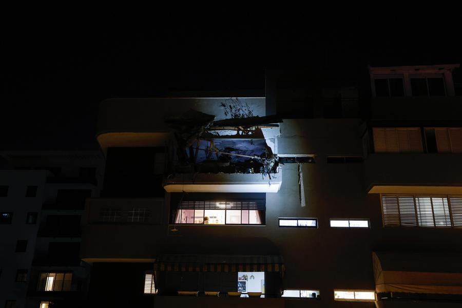 RAMAT GAN (Israël), 18 mars (Xinhua) -- Photo prise le 18 mars 2026 montrant le site d'impact d'une attaque aux missiles de l'Iran à Ramat Gan, dans le centre d'Israël. Un homme et une femme ont été tués mardi soir dans cette ville, après qu'un missile tiré depuis l'Iran a frappé un immeuble résidentiel, a rapporté le service national d'urgence israélien Maguen David Adom. (Xinhua/Jamal Awad)