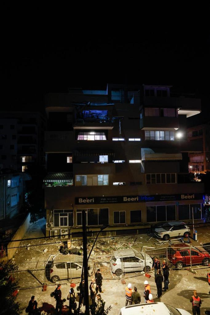 RAMAT GAN (Israël),18 mars (Xinhua) -- Des secouristes interviennent sur le site d'impact d'une attaque de missile iranien à Ramat Gan, dans le centre d'Israël, le 18 mars 2026. Un homme et une femme ont été tués mardi soir dans cette ville après qu'un missile tiré depuis l'Iran a frappé un immeuble résidentiel, a rapporté le service national d'urgence israélien Maguen David Adom. (Xinhua/Jamal Awad)■