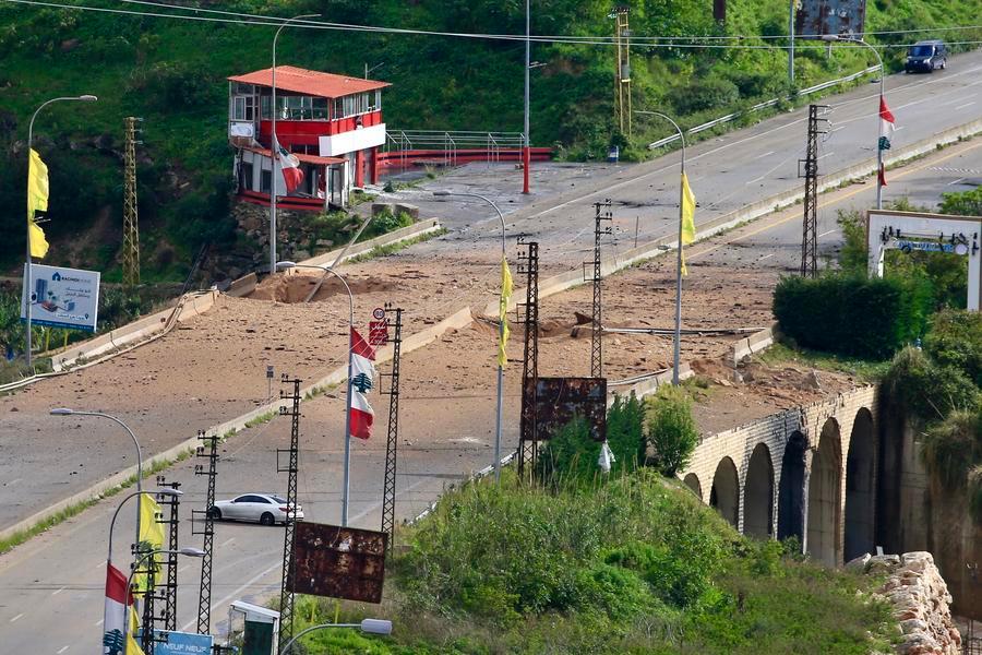 QASMIYEH (Liban), 23 mars (Xinhua) -- Photo prise le 22 mars 2026 montrant le site d'une frappe aérienne israélienne sur un pont enjambant le fleuve Litani à Qasmiyeh, dans le sud du Liban. Des avions de combat israéliens ont frappé dimanche le pont stratégique de Qasmiyeh alors qu'Israël lançait une nouvelle vague de frappes aériennes dans toute la région, a rapporté l'Agence nationale d'information du Liban. (Xinhua/Ali Hashisho)