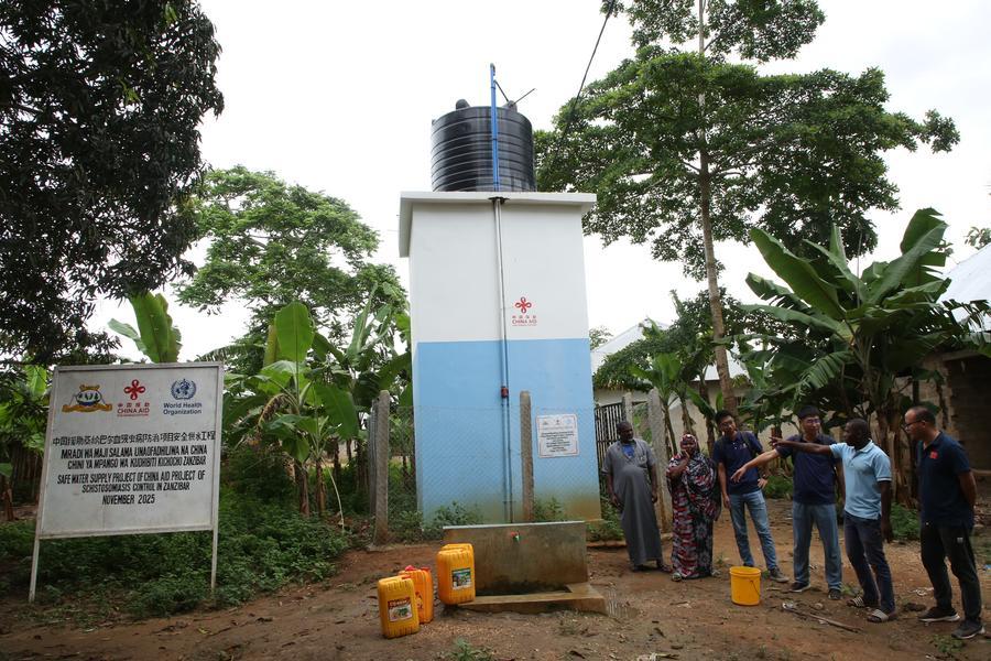 CHAANI (Tanzanie), 23 mars (Xinhua) -- Photo prise le 22 mars 2026 montrant un château d'eau construit dans le cadre d'un projet d'approvisionnement en eau potable soutenu par la Chine, à Chaani, à Zanzibar, en Tanzanie. Avec ce projet, plus de 250 habitants de la communauté de Chaani ont désormais accès à l'eau potable, abandonnant les rivières contaminées, source majeure d'infection. (Xinhua/Emmanuel Herman)CHAANI (Tanzanie), 23 mars (Xinhua) -- Un garçon boit de l'eau à un robinet installé grâce à un projet d'approvisionnement en eau potable soutenu par la Chine à Chaani, à Zanzibar, en Tanzanie, le 22 mars 2026. Avec ce projet, plus de 250 habitants de la communauté de Chaani ont désormais accès à l'eau potable, abandonnant les rivières contaminées, source majeure d'infection. (Xinhua/Emmanuel Herman)CHAANI (Tanzanie), 23 mars (Xinhua) -- Des habitants viennent s'approvisionner en eau à un robinet installé grâce à un projet d'approvisionnement en eau potable soutenu par la Chine à Chaani, à Zanzibar, en Tanzanie, le 22 mars 2026. Avec ce projet, plus de 250 habitants de la communauté de Chaani ont désormais accès à l'eau potable, abandonnant les rivières contaminées, source majeure d'infection. (Xinhua/Emmanuel Herman)