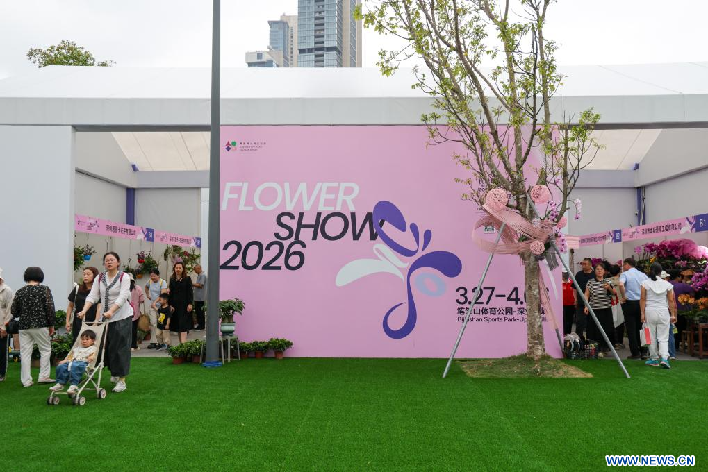 SHENZHEN, 28 mars (Xinhua) -- Des visiteurs lors de l'édition 2026 de l'Exposition florale de la zone de la Grande Baie Guangdong-Hong Kong-Macao, à Shenzhen, dans le sud de la Chine, le 27 mars 2026.