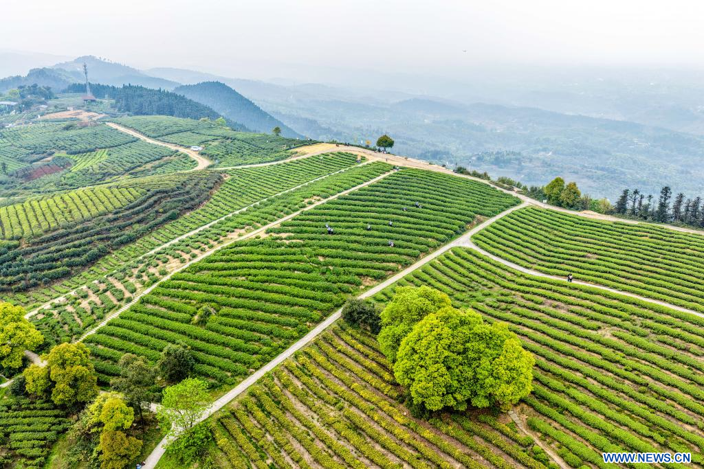 Avec une superficie de plantation de 43.000 mu (environ 2.866,67 hectares), l'industrie du thé est une spécialité agricole locale à Rongchang. (Photo : Tang Yi)