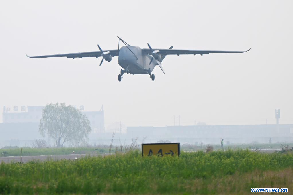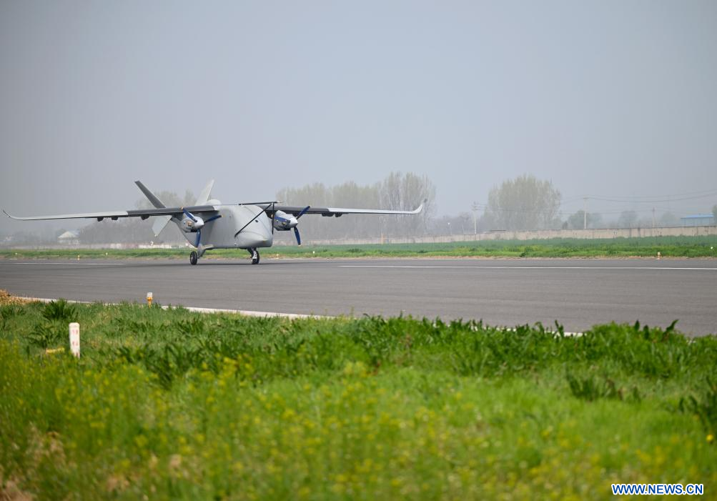 ZHENGZHOU, 31 mars (Xinhua) -- Le drone cargo Changying-8 a effectué avec succès mardi son vol inaugural à un aéroport de Zhengzhou, dans la province chinoise du Henan (centre).