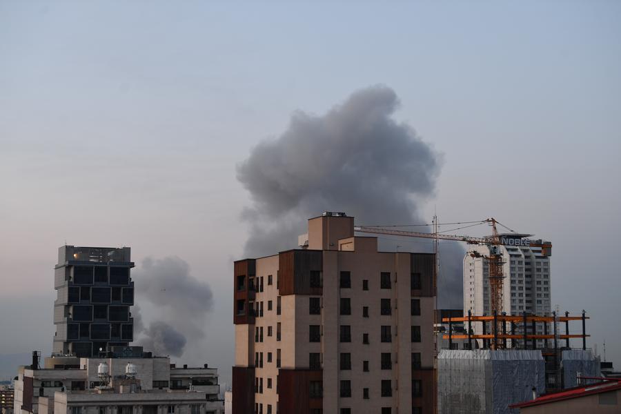 TEHERAN, 1er avril (Xinhua) -- De la fumée s'élève des quartiers est et sud de Téhéran après des explosions violentes entendues dans la capitale iranienne vers 05H35 heure locale (02H05 GMT), le 1er avril 2026. (Xinhua/Shadati)