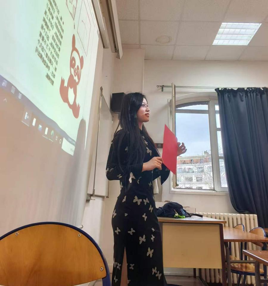 Cette jeune femme de 23 ans, étudiante en master à l'Université des relations internationales de Chine, s'est rendue en France en octobre 2025 dans le cadre d'un programme d'échange d'assistants linguistiques sino-français pour devenir une assistante d'enseignement chinois dans un lycée public à Paris.