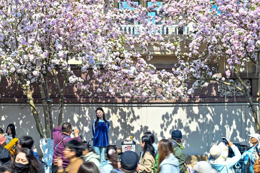 TIANJIN, 4 avril (Xinhua) -- Le festival des fleurs de pommier ornemental se déroule du 3 au 12 avril dans le quartier historique de Wudadao, à Tianjin, dans le nord de la Chine, donnant un coup de pouce à l'industrie culturelle et touristique locale.