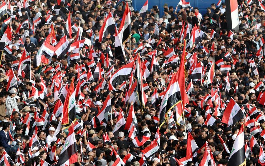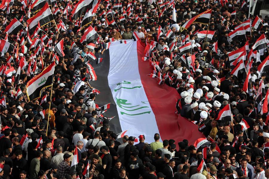 BAGDAD, 5 avril (Xinhua) -- Une manifestation condamnant les frappes américaines et israéliennes contre l'Iran à Bagdad, en Irak, le 4 avril 2026. (Xinhua/Khalil Dawood)BAGDAD, 5 avril (Xinhua) -- Une manifestation condamnant les frappes américaines et israéliennes contre l'Iran à Bagdad, en Irak, le 4 avril 2026. (Xinhua/Khalil Dawood)■