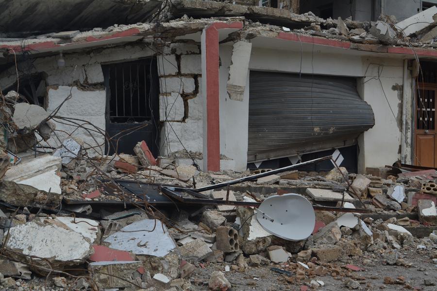 NABATIEH (Liban), 6 avril (Xinhua) -- Photo prise le 5 avril 2026 montrant les débris de maisons détruites par des frappes aériennes israéliennes dans la ville de Toul à Nabatieh, dans le sud du Liban. Le ministère libanais de la Santé publique a indiqué que le nombre total de personnes tuées par les attaques israéliennes depuis le 2 mars s'élevait désormais à 1.461, tandis que 4.430 autres avaient été blessées. (Xinhua/Taher Abu Hamdan)