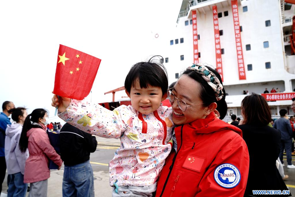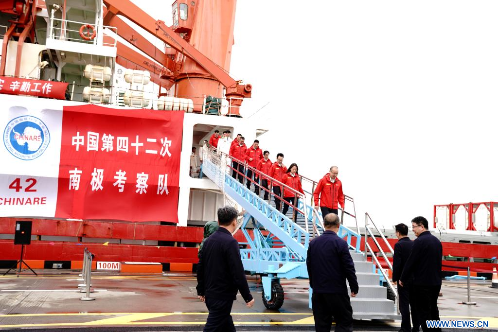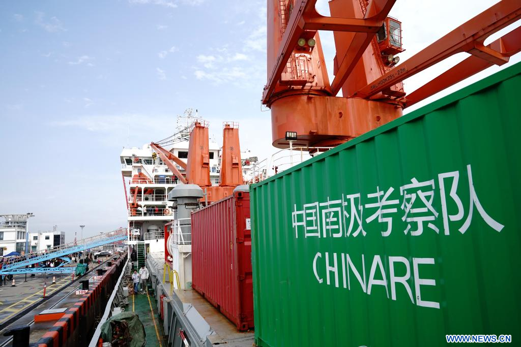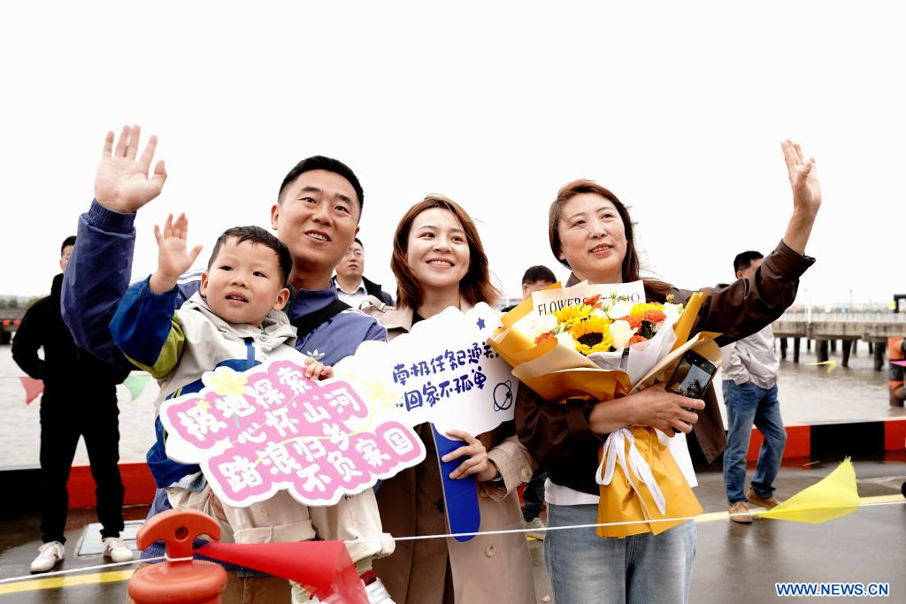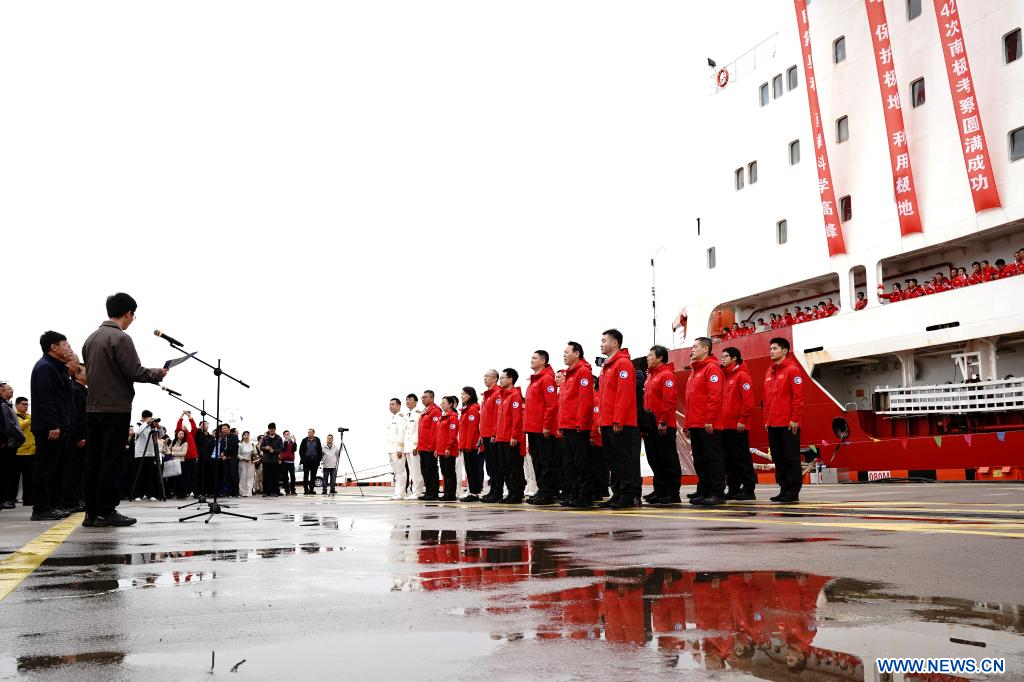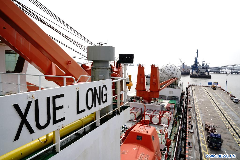 SHANGHAI, 9 avril (Xinhua) -- Le brise-glace chinois de recherche Xuelong, ou "Dragon des neiges", est rentré jeudi à Shanghai, dans l'est de la Chine, après un voyage de 160 jours dans le cadre de la 42e expédition antarctique du pays. Fin