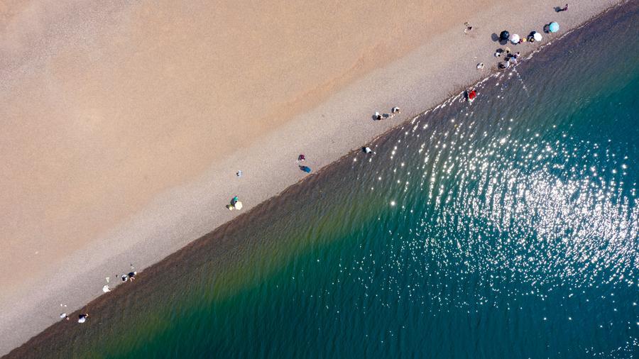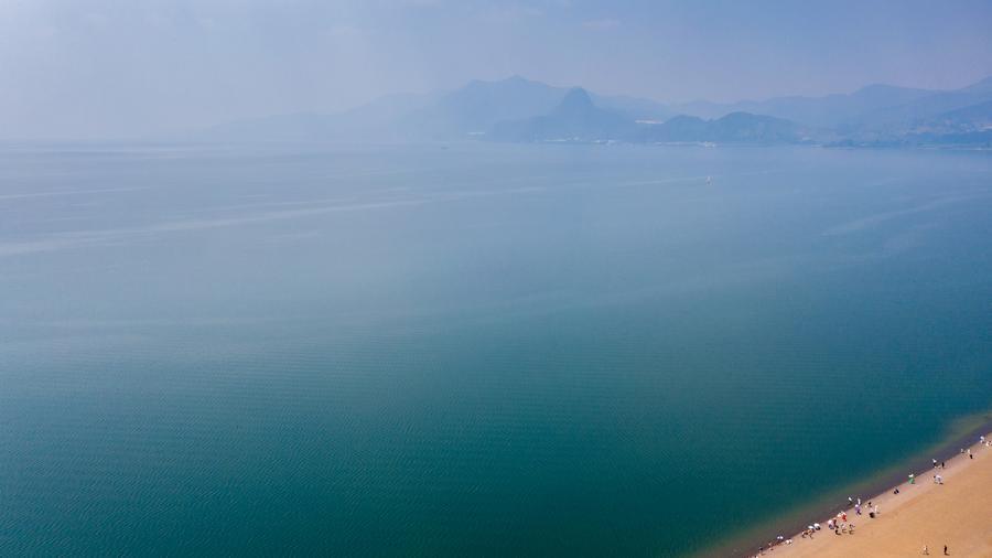 Vue aérienne du lac Fuxian, dans la ville de Yuxi de la province chinoise du Yunnan (sud-ouest), le 18 avril 2026. (Photo : Peng Yikai)