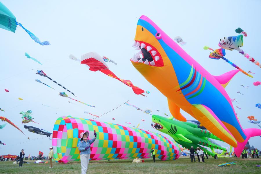 JINAN, 21 avril (Xinhua) -- Le 18 avril, dans la ville de Weifang de la province chinoise du Shandong (est), le ciel offre un spectacle étonnant : des personnages d'animation chinois côtoient "Bob l'éponge", des dragons et phénix mythiques volent aux côtés de paons du Sri Lanka, et Confucius apparaît avec un chien robot moderne...