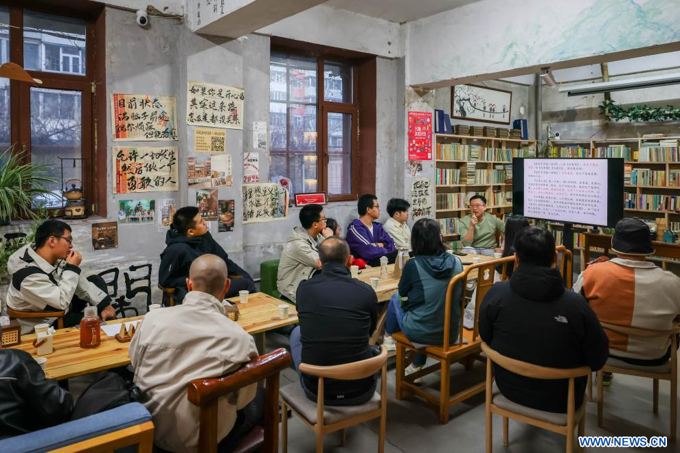 CHANGCHUN, 22 avril (Xinhua) -- Des lecteurs participent à un événement de partage de livres dans la librairie Fanmo, à Changchun, dans la province chinoise du Jilin (nord-est), le 18 avril 2026.