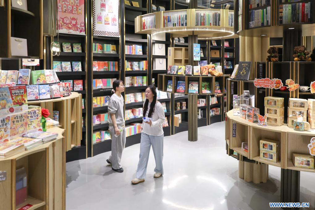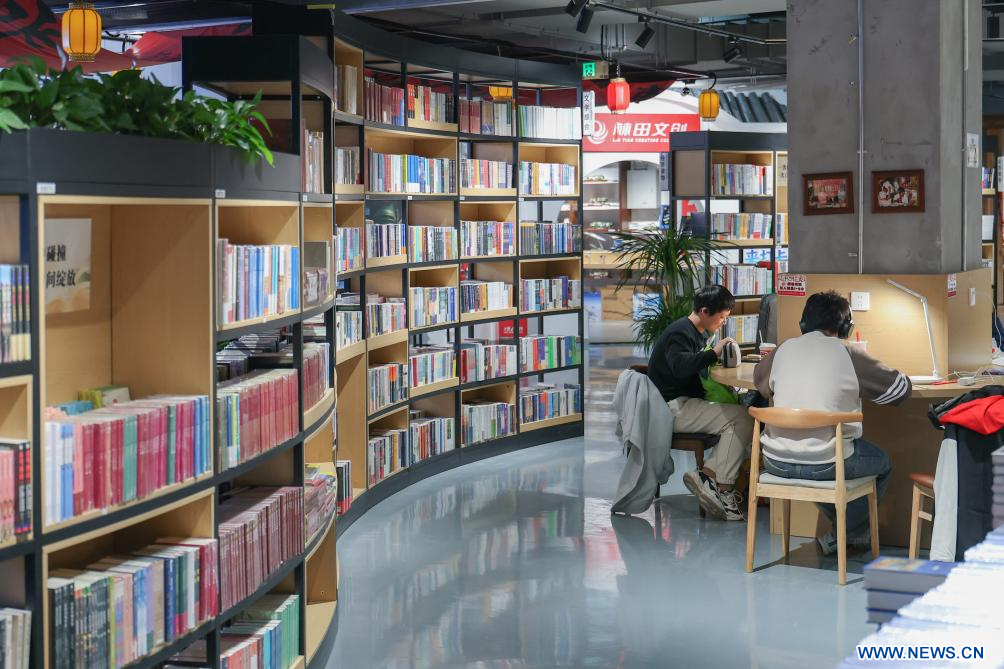 CHANGCHUN, 23 avril (Xinhua) -- Des habitants choisissent des livres dans une librairie à Changchun, capitale de la province du Jilin (nord-est de la Chine), le 16 avril 2026. Ces dernières années, Changchun a favorisé la transformation des librairies classiques en espaces d'expérience culturelle complète en introduisant et en développant des concepts de lecture innovants. (Photo : Xu Chang)