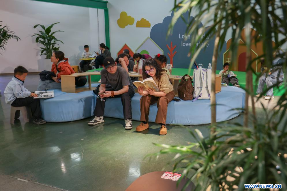 CHANGCHUN, 23 avril (Xinhua) -- Des habitants lisent dans une librairie à Changchun, capitale de la province du Jilin (nord-est de la Chine), le 19 avril 2026. Ces dernières années, Changchun a favorisé la transformation des librairies classiques en espaces d'expérience culturelle complète en introduisant et en développant des concepts de lecture innovants. (Photo : Xu Chang)