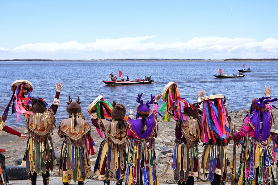 Des membres de l'ethnie Hezhen dégustent du poisson frais lors d'un événement organisé dans le cadre de la Semaine de la culture populaire "Kaijiang" à Tongjiang, dans la province chinoise du Heilongjiang (nord-est), le 25 avril 2026. (Photo : Liu Wanping)Des membres de l'ethnie Hezhen se produisent lors d'un événement organisé dans le cadre de la Semaine de la culture populaire "Kaijiang" à Tongjiang, dans la province chinoise du Heilongjiang (nord-est), le 25 avril 2026. (Photo : Liu Wanping)Des membres de l'ethnie Hezhen scandent des cris pour "réveiller" rituellement la rivière lors d'un événement organisé dans le cadre de la Semaine de la culture populaire "Kaijiang" à Tongjiang, dans la province chinoise du Heilongjiang (nord-est), le 25 avril 2026. (Photo : Liu Wanping)Photo prise le 25 avril 2026 montrant une scène capturée lors d'un événement organisé dans le cadre de la Semaine de la culture populaire "Kaijiang" à Tongjiang, dans la province chinoise du Heilongjiang (nord-est). (Photo : Liu Wanping)■