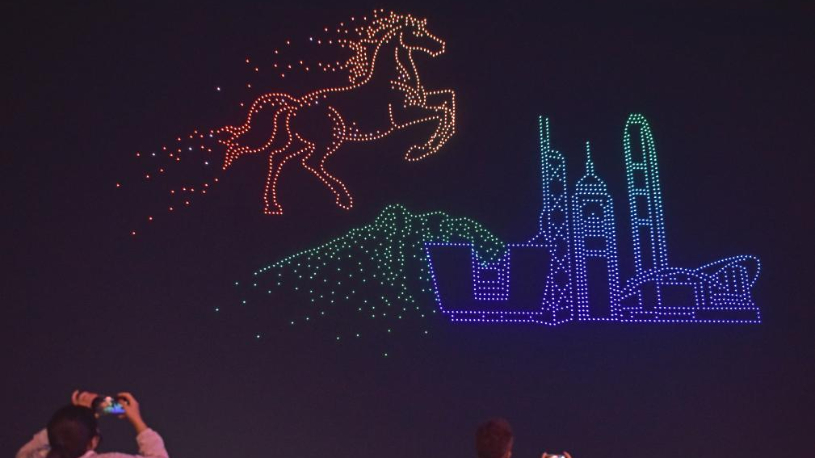 Spectacle de drones lumineux pour célébrer le Nouvel An chinois à Hong Kong